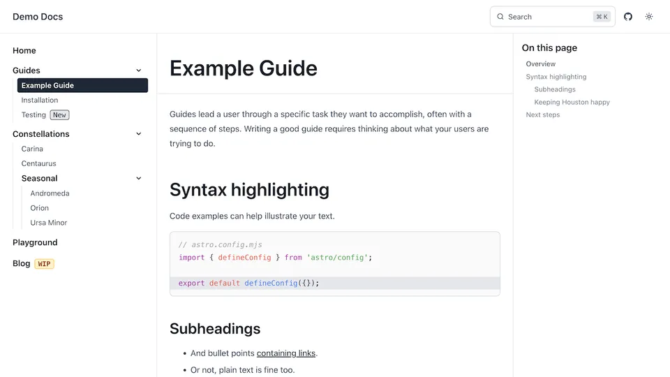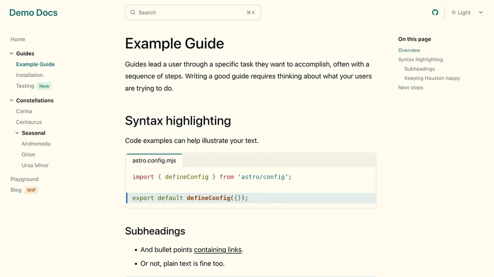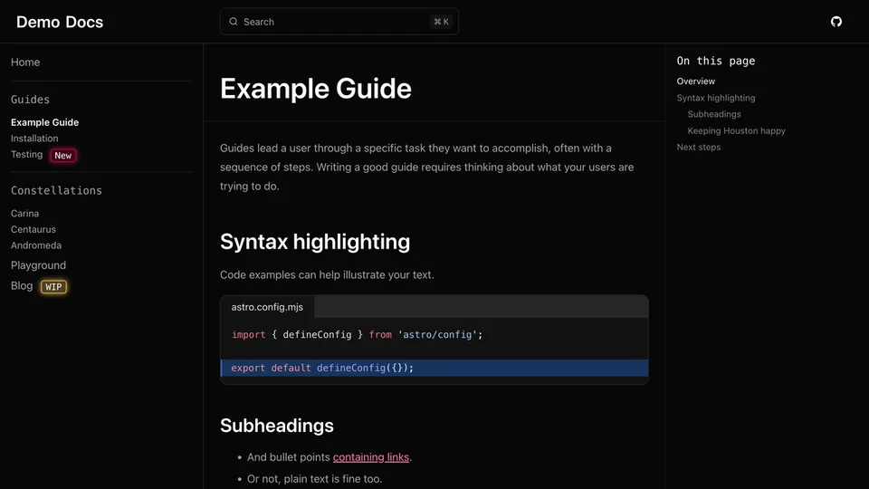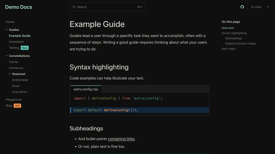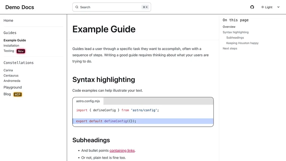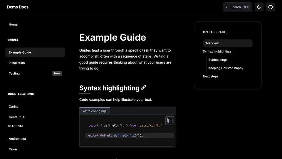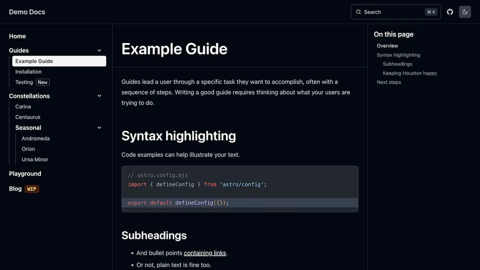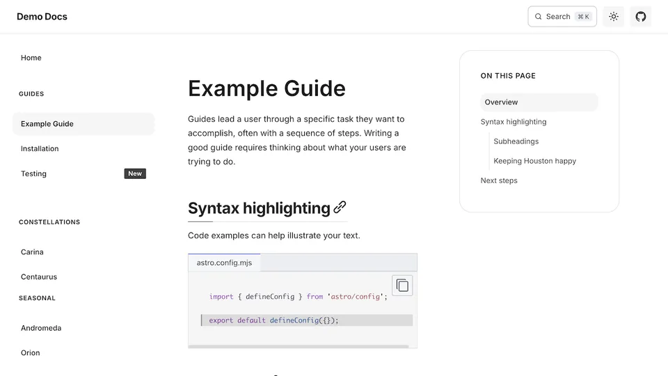 Preview a list of all themes below or try them out interactively on the Starlight Themes demo site.